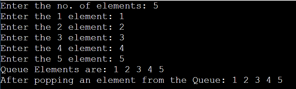 printf("\nAfter popping an element from the Queue: ");